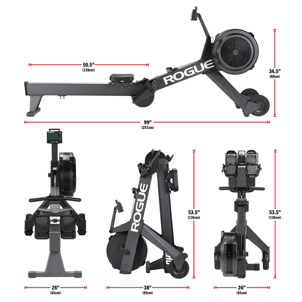 The Rogue Echo Rower is a competition-grade air resistance rowing machine built for durability and precision. It features a foldable aluminum frame, an LCD console with Bluetooth/ANT+, and a precision-calibrated flywheel for smooth strokes. Key specs: